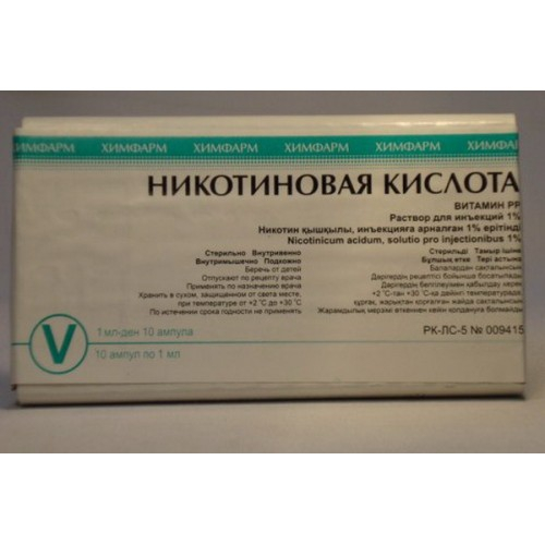 Никотиновая кислота быстро всасывается при парентеральном введении. Равномерно распределяется по органам и тканям. Инактивируется, главным образом, путем метилирования и меньше путем конъюгирования. Частично биотрансформируется в печени с образованием N-метилникотинамида, метилпиридонкарбоксамидов, глюкуронида и комплекса с глицином. Период полувыведения (Т1/2)-45 минут. Выводится из организма почками в неизмененной форме и в виде метаболитов. Почечный клиренс зависит от концентрации никотиновой кислоты в плазме крови и может снижаться при высокой концентрации ее в плазме.