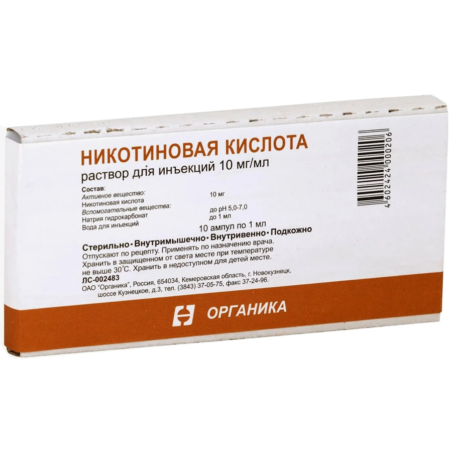 - Действующее вещество: Никотиновая кислота