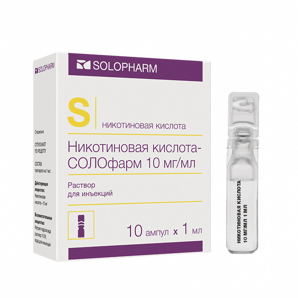 Никотиновая кислота 1% 1мл №10 ампулы хф