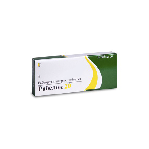 Эрадикация H. pylori: пациенты, инфицированные H. pylori, должны получать соответствующую терапию для эрадикации H. pylori. Рекомендуется назначение комбинации в течение 7 дней: Рабелок 20 мг дважды в сутки + кларитромицин по 500 мг дважды в сутки и амоксициллин по 1 г дважды в сутки.