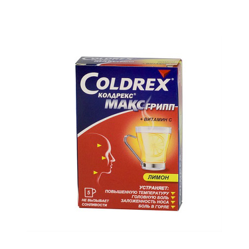 Колдрекс МаксГрипп – комбинированный лекарственный препарат, обладающий жаропонижающим, анальгетическим, симпатомиметическим и иммуностимулирующим действием. В состав препарата входят три активных компонента – парацетамол, фенилэфрина гидрохлорид и аскорбиновая кислота. Механизм действия и терапевтические эффекты препарата обусловлены фармакологическими свойствами активных компонентов, входящих в его состав: Парацетамол – лекарственное средство группы ненаркотических анальгетиков. Механизм действия препарата связан с его способностью угнетать активность фермента циклооксигеназы и снижать синтез простагландинов из арахидоновой кислоты. Анальгетическое действие препарата обусловлено снижением количества простагландинов в тканях центральной нервной системы. Антипиретический эффект парацетамола осуществляется за счет непосредственного влияния препарата на центр терморегуляции в гипоталамусе.