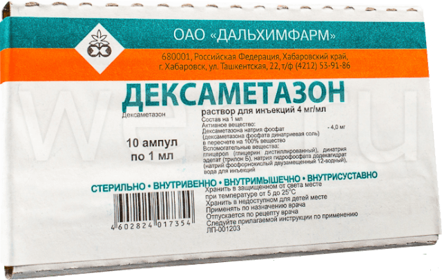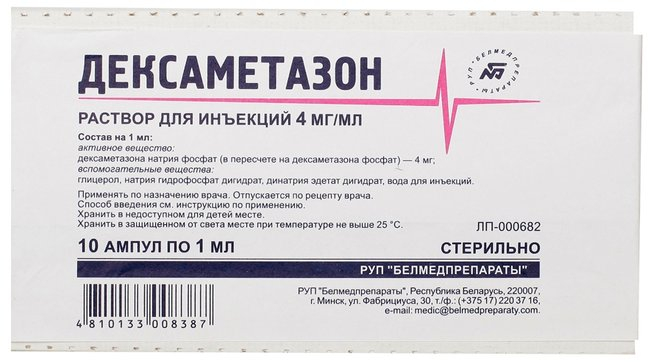 - Действующее вещество: Дексаметазон