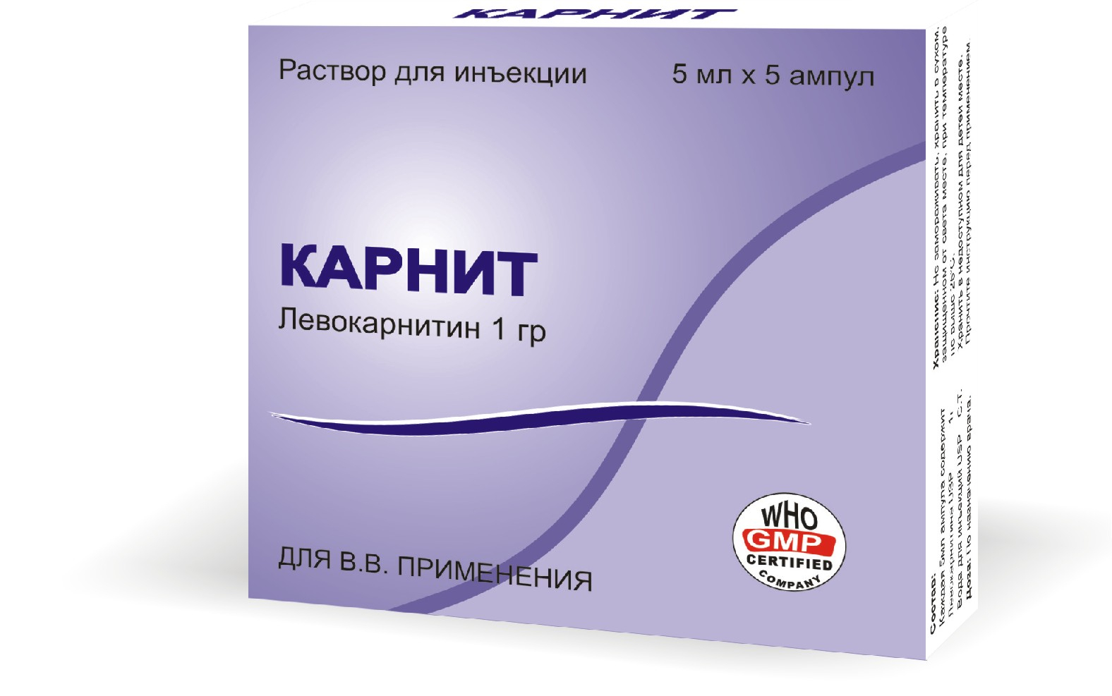 1 ампула (5 мл) содержит активное вещество левокарнитин – 1.0 г;