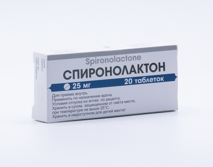 Действующее вещество: спиронолактон - 25 мг.