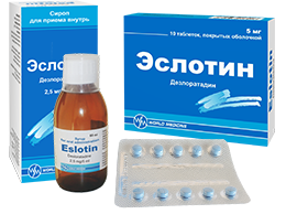Эслотин оказывает антигистаминное, противоаллергическое и противовоспалительное действие, не вызывает сонливости. При приеме внутрь дезлоратадин (первичный активный метаболит лоратадина) селективно блокирует периферические гистаминовые Н1-рецепторы. Подавляет каскад цитостатических реакций: выделение провоспалительных цитокинов, в т.ч. интерлейкина-4 (ИЛ-4), интерлейкина-6 (ИЛ-6), интерлейкина-8 (ИЛ-8), интерлейкина-13 (ИЛ-13), провоспалительных хемокинов типа RANTES, продукцию супероксидных анионов активированными полиморфно-ядерными нейтрофилами, адгезию и хемотаксис эозинофилов, экспрессию молекул адгезии, в т.ч. Р-селектина, IgE-опосредованное выделение гистамина, простагландина D2 и лейкотриена С4.