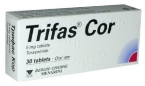 Отеки и выпоты. Лечение начинается с применения 1 таблетки в сутки препарата Трифас ® Cor, что составляет 5 мг торасемида. Обычно эта доза считается поддерживающей. Если суточная доза 5 мг недостаточно, то следует применять 2 таблетки препарата в сутки, что составляет 10 мг торасемида, которую назначать ежедневно. В зависимости от тяжести состояния больного суточная доза может быть увеличена до 20 мг торасемида.