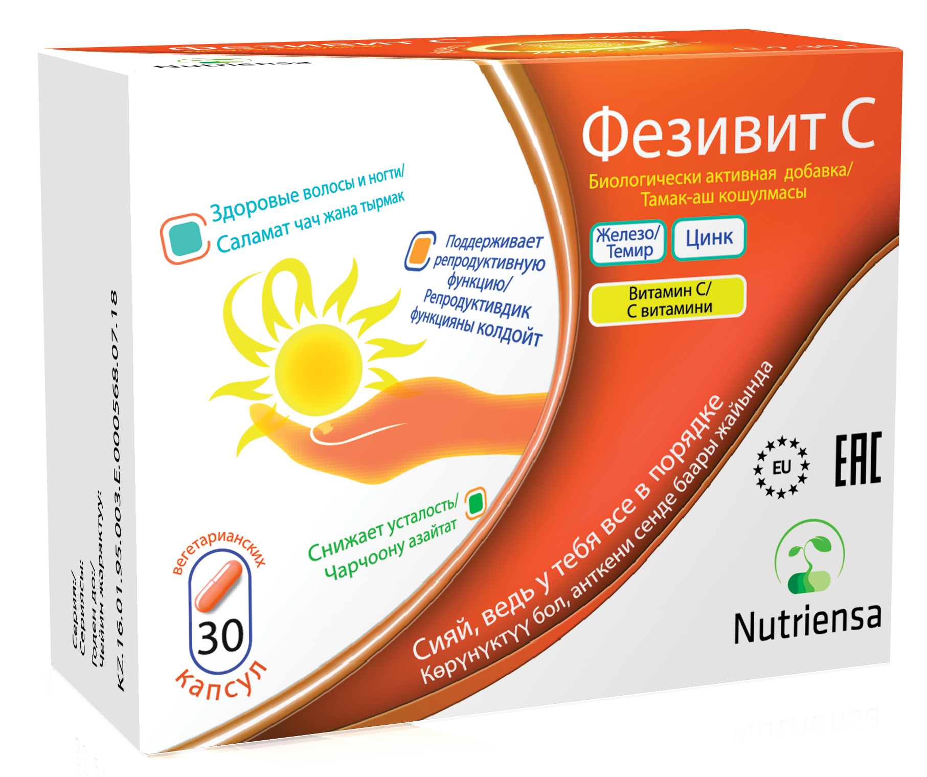 Капсула имеет растительное происхождение (гидроксипропилметилцеллюлоза) и не содержит консервантов. Биологически активная добавка Фезивит C содержит два самых важных микроэлемента: железо и цинк, а также самый известный антиоксидант, витамин С, который действует синергетически для правильной работы организма.