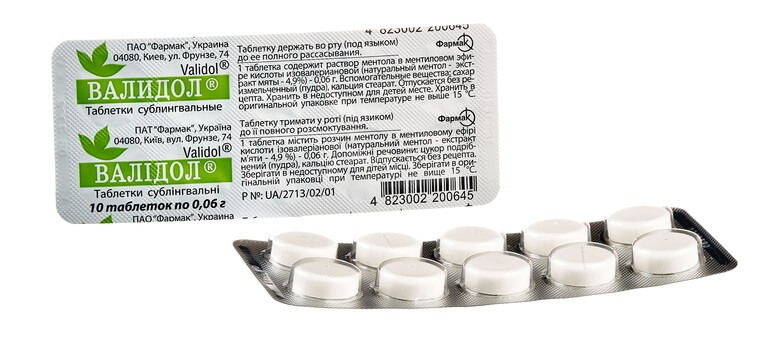 Действующее вещество: левоментола раствор в ментил изовалерате (валидол) - 60 мг. Вспомогательные вещества: сахароза, магния стеарат.