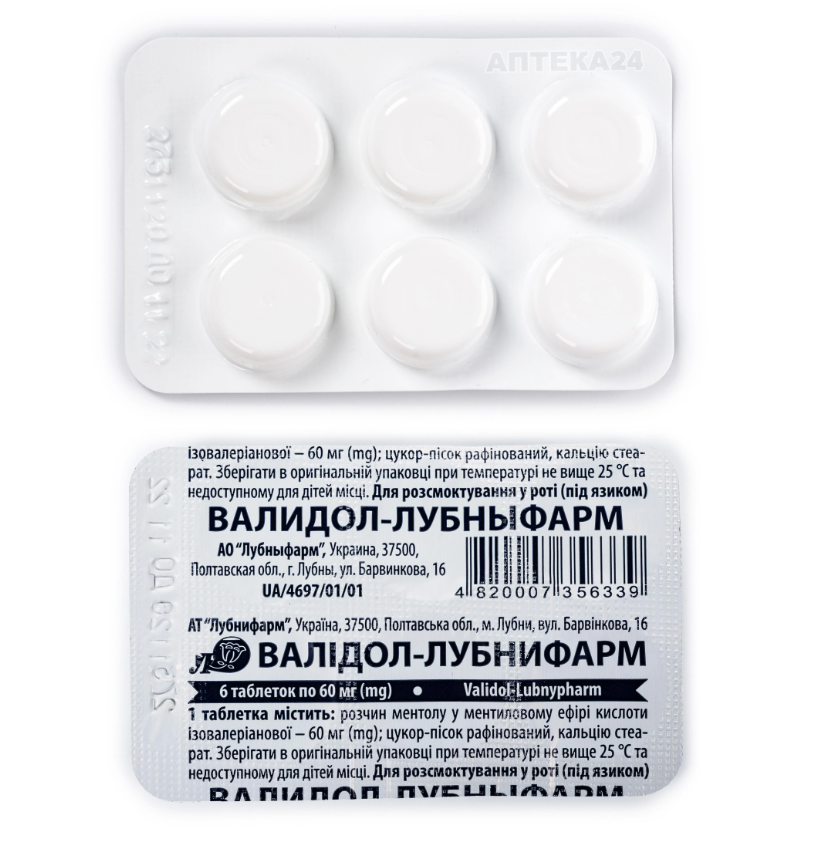 Левоментола раствор в ментилизовалерате (валидол) - 60 мг