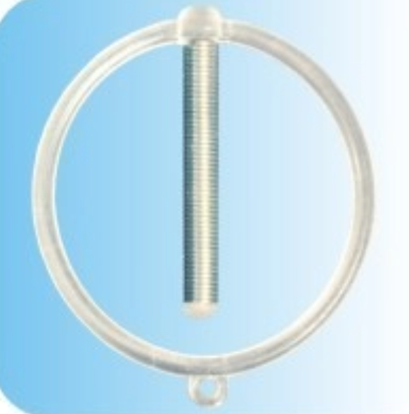 На нижнем полюсе кольца находится петля для крепления монофиламентных трансцервикальных нитей зеленого или синего цвета.