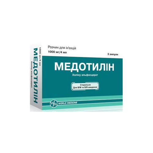 Механизм действия основан на том, что при попадании в организм холина альфосцерат расщепляется под действием ферментов на холин и глицерофосфат: холин принимает участие в биосинтезе ацетилхолина - одного из основных медиаторов нервного возбуждения; глицерофосфат является предшественником фосфолипидов (фосфатидилхолина) нейронной мембраны. Таким образом, Медотилин улучшает передачу нервных импульсов в холинергических нейронах, положительно влияет на пластичность нейрональных мембран и функцию рецепторов. Медотилин улучшает церебральный кровоток, усиливает метаболические процессы в головном мозге, активирует структуры ретикулярной формации головного мозга и восстанавливает сознание при травматическом повреждении головного мозга.
