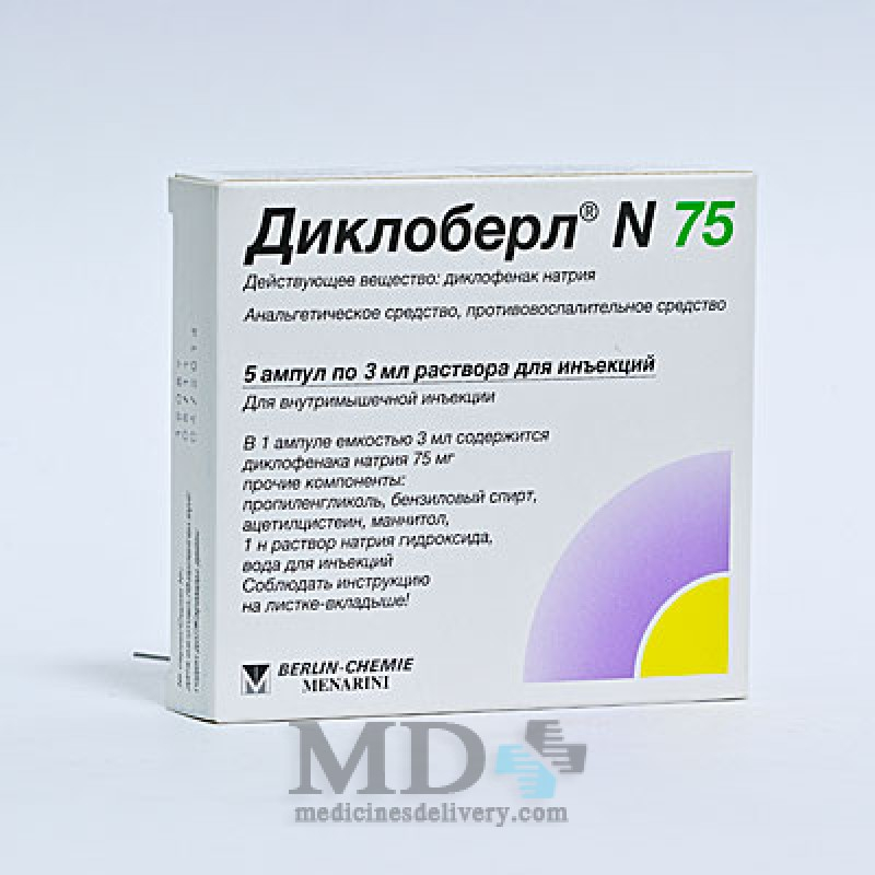 Диклоберл N 75 — нестероидный препарат с выраженными обезболивающими / противовоспалительными свойствами. Он является ингибитором простагландинсинтетазы (ЦОГ).