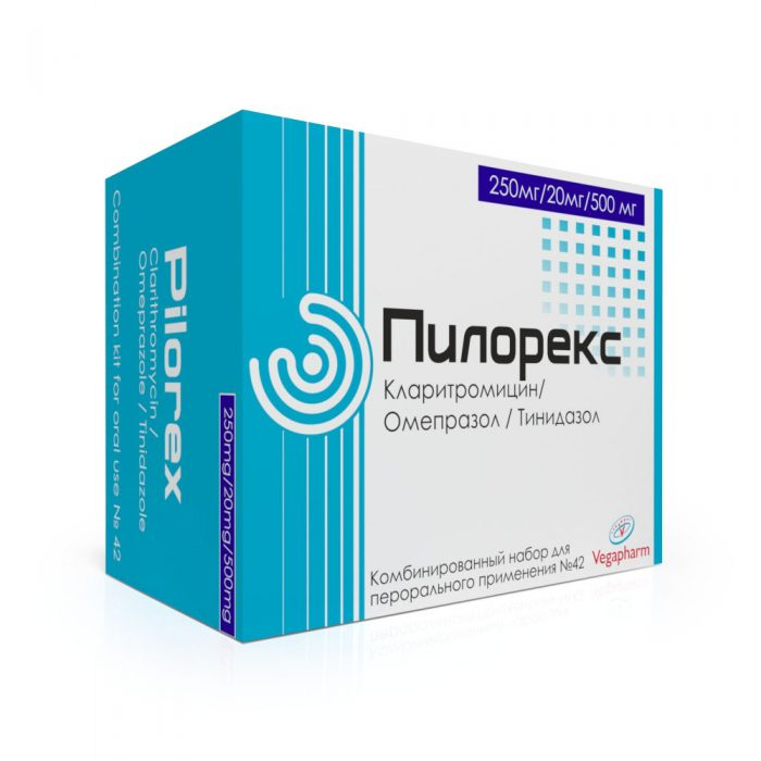 Один блистер содержащий две капсулы омепразола, две таблетки кларитромицина и две таблетки тинидазола предназначен на 1 день лечения, при этом принимают одну капсулу омепразола и по одной таблетке кларитромицина и тинидазола утром, а оставшуюся капсулу омепразола и оставшиеся две таблетки кларитромицина и тинидазола принимают вечером. Длительность терапии – 7-10 дней.