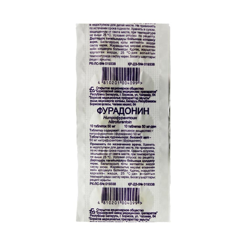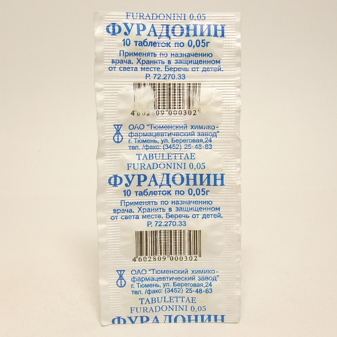 Действующее вещество: нитрофурантоин (фурадонин) - 50 мг.