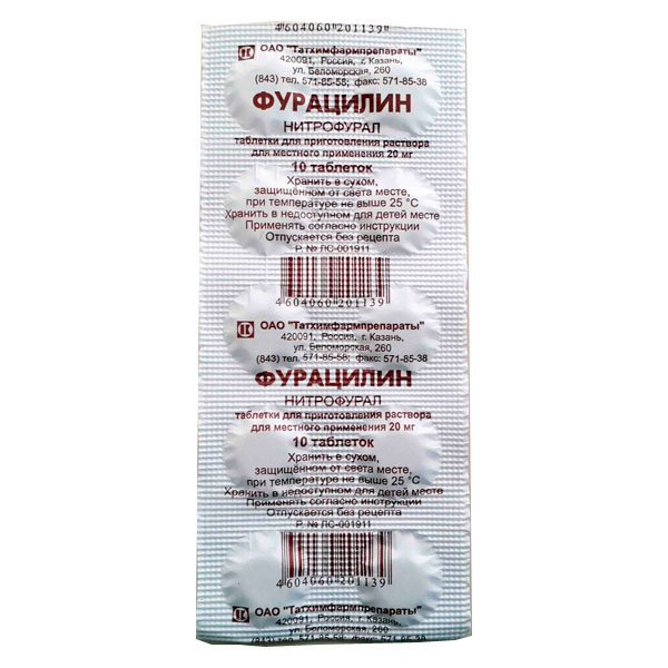 Фурацилин 20 мг №10 таблетки