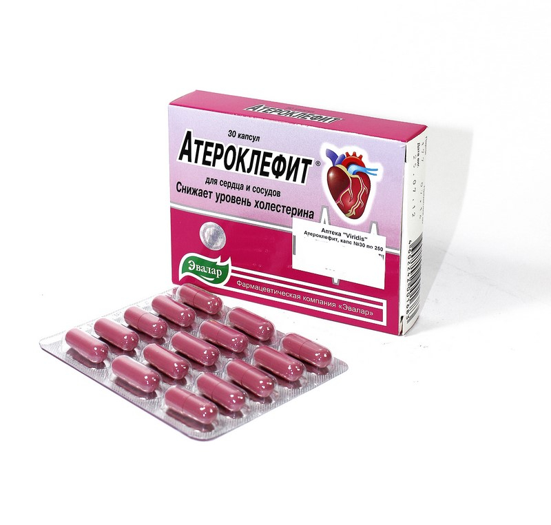 Атероклефит БИО- это комплекс биологически активных веществ экстракта диоскореи, экстракта красного клевера , экстракта цветков и листьев боярышника , витаминов С (аскорбиновой кислоты), PP (никотиновой кислоты) и рутина - для поддержания в норме уровня холестерина.