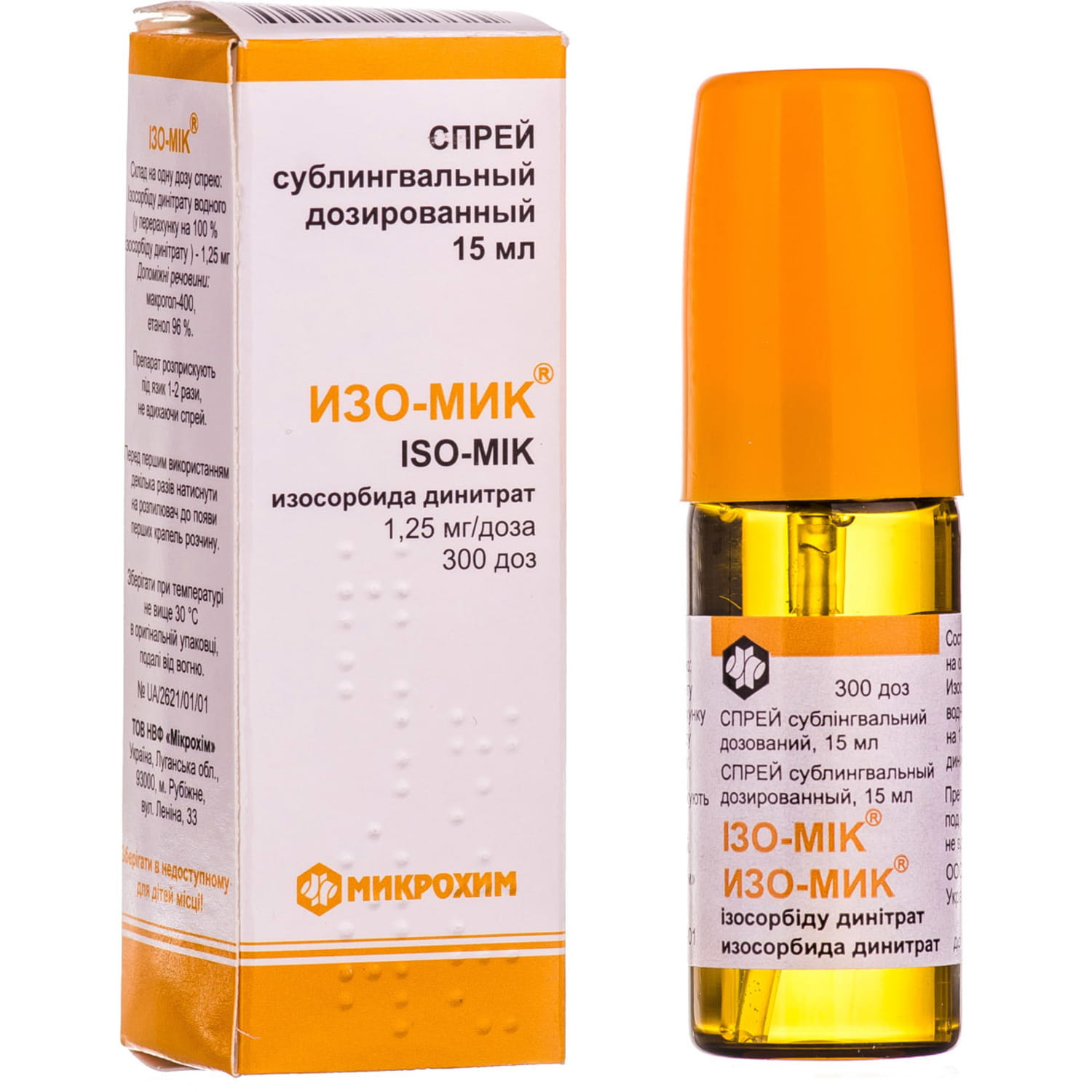 После распыления в полости рта препарат быстро всасывается и начинает оказывать гемодинамический и антиангинальный эффект через 2-5 мин (т.е. купирование приступа стенокардии наблюдается через 2-5 мин после приема). Максимальная концентрация активного вещества в плазме крови достигается через 5-6 мин. Максимальный эффект после впрыскивания препарата ИЗО-МИК наступает на 10-15-й мин. Изосорбида динитрат метаболизируется с образованием активного метаболита изосорбида-5-мононитрата, период полувыведения которого составляет 5 ч, а также изосорбида-2-мононитрата с периодом полувыведения 2,5 ч. Период полувыведения изосорбида динитрата при сублингвальном применении препарата составляет 1 ч. Период полувыведения может удлиняться при курсовом применении препарата. От 80 до 100 % введенной разовой дозы выводится с мочой в течение 24 ч, преимущественно в форме метаболитов.