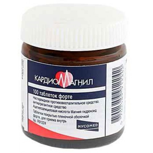 Профилактика повторного инфаркта миокарда и тромбоза кровеносных сосудов 1 таблетка Кардиомагнила, содержащего АСК в дозе 75 - 150 мг 1 раз в сутки.