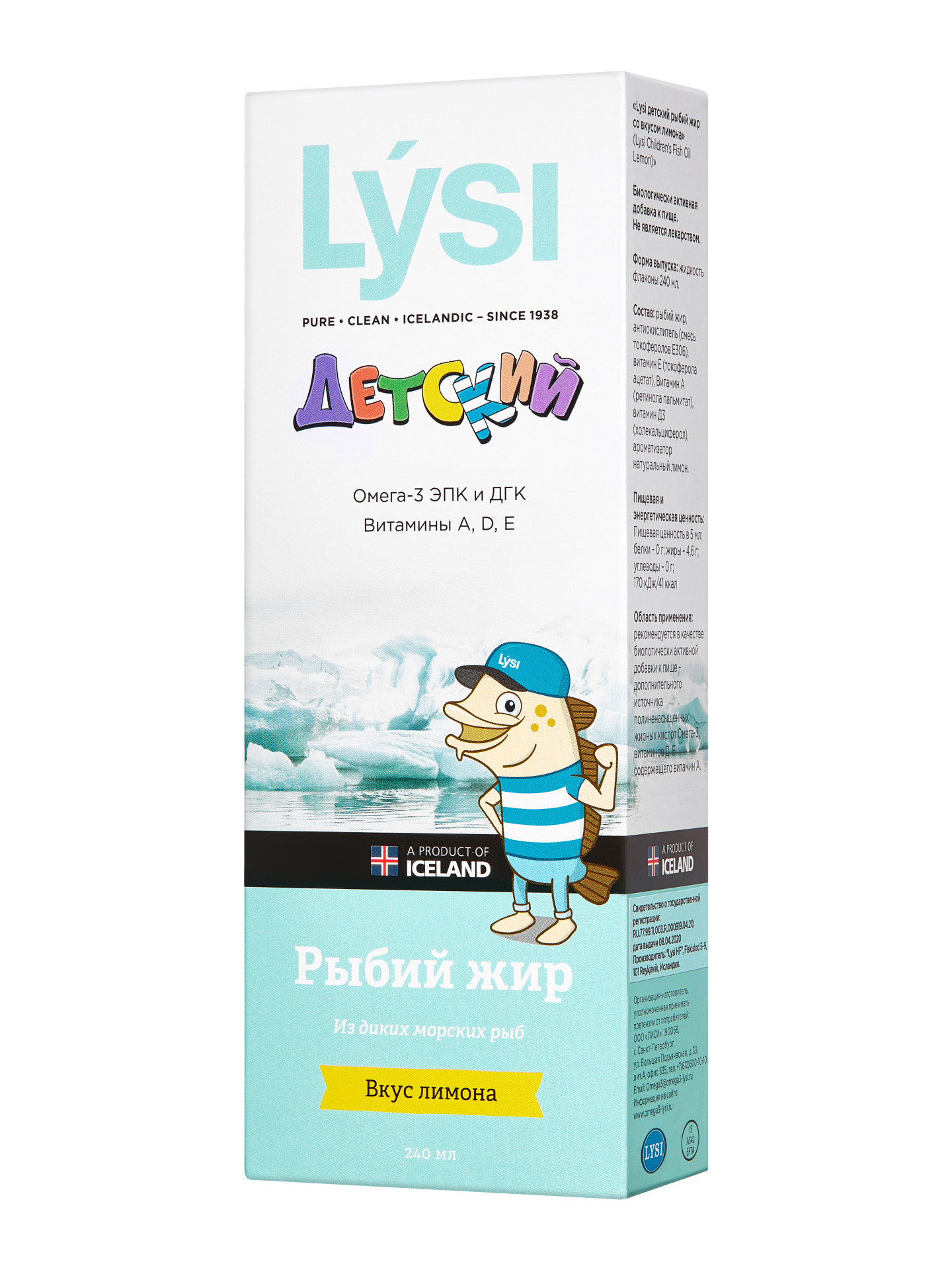 Детский рыбий жир Lysi Omega-3 в жидкой форме с приятным лимонным вкусом от исландского производителя рыбьего жира, содержит витамины А, D и Е, а также Омега-3 жирные кислоты, одна из которых - ДГК играет важную роль в развитии мозга и центральной нервной системы. Витамины А и D необходимы для нормального развития зубов, костей и зрения. Рыбий жир помогает укреплению здоровья и помогает в профилактике многих распространенных заболеваний. Оптимальное для детского организма соотношение ДГК и ЭПК, разрешен к приему детям с 3-х лет, стандартизованное содержание витаминов D, Е, А, рассчитанное исходя из потребности детского организма. Для достижения нужной пропорции смешиваются несколько видов рыбьего жира, преимущественно рыбий жир из печени североатлантической трески с добавлением жира тунца.