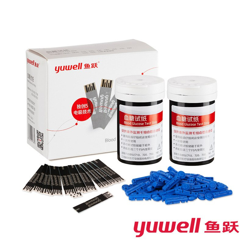 Набор глюкометров YUWELL, 50 шт., медицинские полоски для измерения глюкозы в крови со стерильными ланцетами и Глюкометром для диабета 710