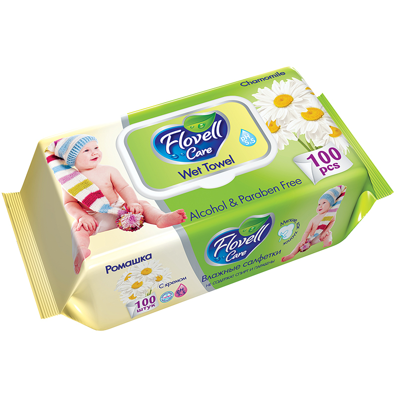 Влажные салфетки Flovell (Фловелл) Care Ромашка - мягкие и нежные салфетки, отлично подходят для деликатного ухода за кожей малыша.