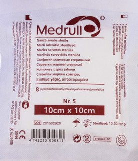 Салфетки стерильные Медрулл 8 слоев марлевые 5 см* 5 см №5