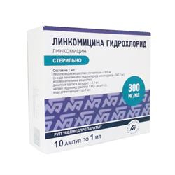 Действующее вещество: Линкомицина гидрохлорида моногидрат (в пересчете на линкомицин) — 300,0 мг