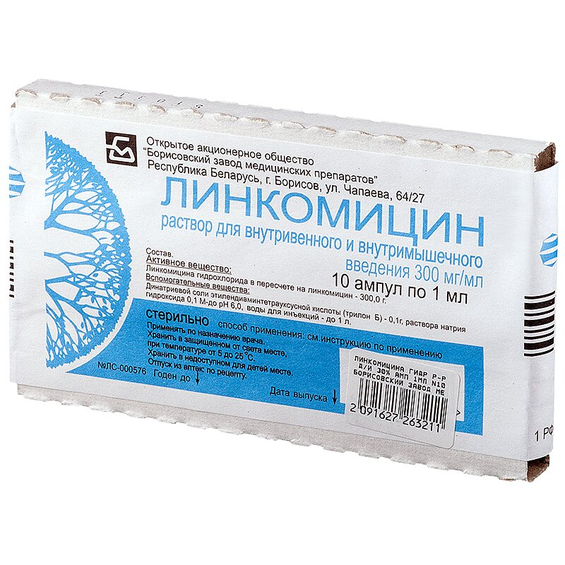 Линкомицина г/хл 30% 1,0 №10 ампулы