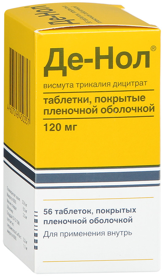 Для эрадикации Helicobacter pylori целесообразно применение Де-Нола в комбинации с другими антибактериальными средствами, обладающими антихеликобактерной активностью.