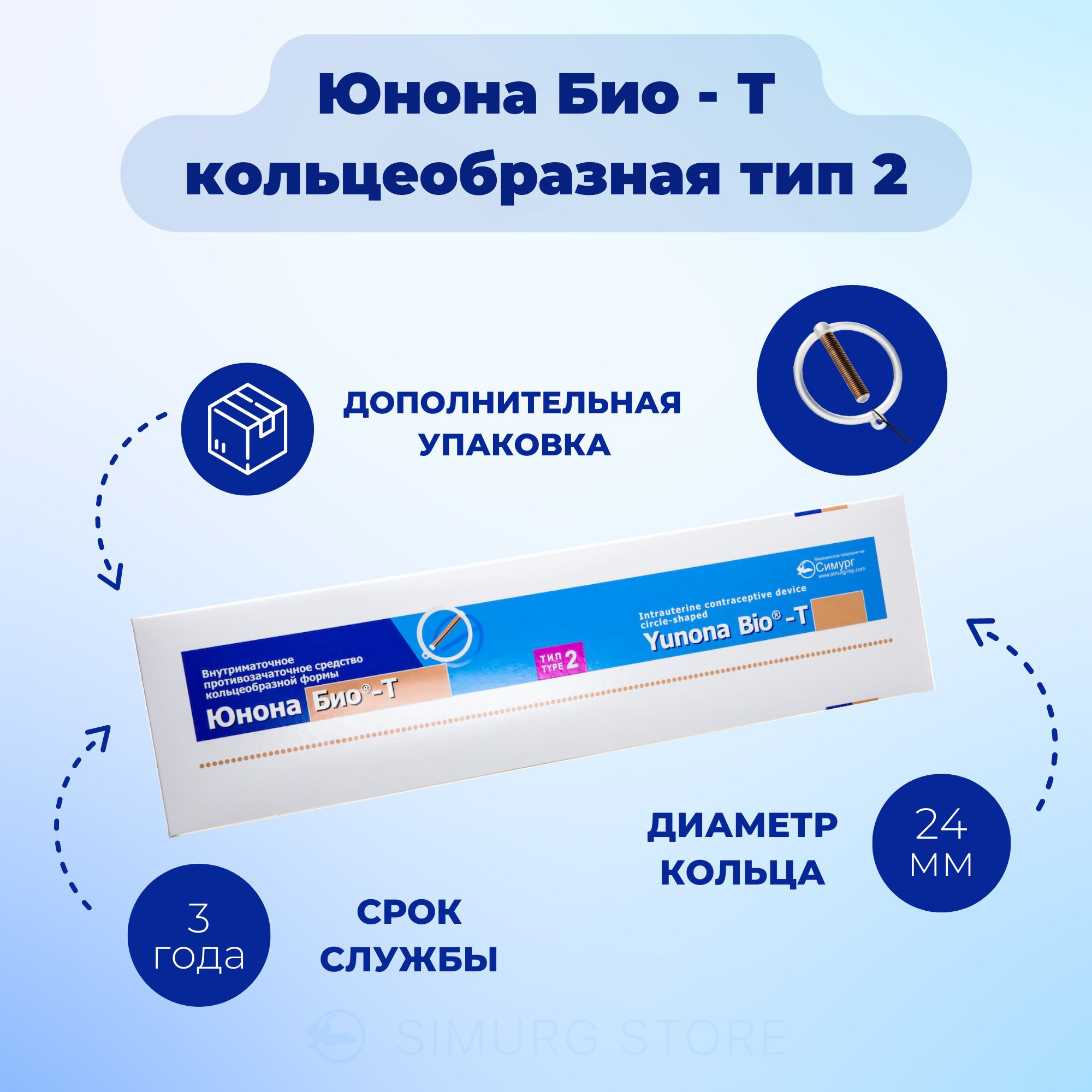 Внутриматочное противозачаточное средство кольцеобразное "Юнона Био-Т" с медью Тип 2 (0081)