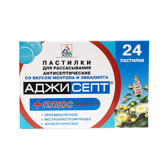 Аджисепт ментол + эвкалипт лидокаин №24 таблетки