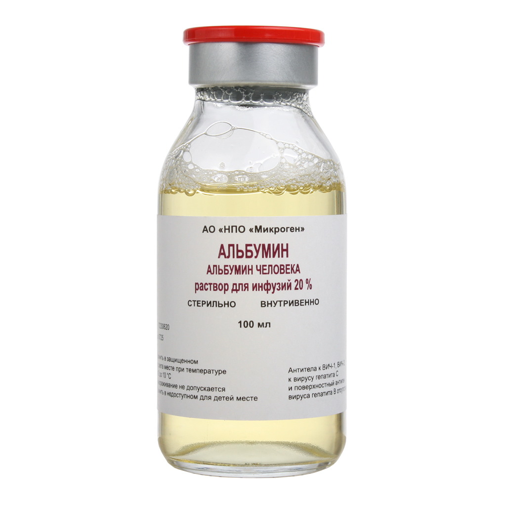 Альбумин человеческий раствор для инфузий 20 % 100 мл