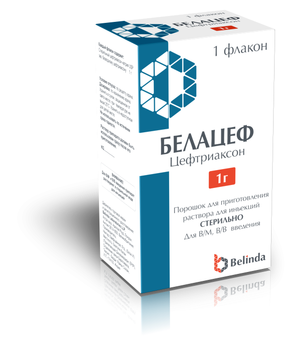 повышенная чувствительность к цефтриаксону, цефалоспоринам и к другим видам бета-лактамных препаратов (пенициллины, монобактамы и карбапенемы) - наличие в анамнезе тяжелых реакций гиперчувствительности (например, анафилактические реакции) на любой другой бета-лактамный антибактериальный препарат (пенициллины, монобактамы, карбапенемы) - повышенная чувствительность к растворителю - лидокаину (следует учитывать противопоказания для лидокаина в соответствии с информацией в инструкции по медицинскому применению лидокаина), если в качестве растворителя используется лидокаин, раствор препарата Белацеф нельзя вводить внутривенно -недоношенным новорожденным до возраста 41 неделя (гестационный возраст + хронологический возраст) -доношенным новорожденным (до 28 дней жизни): при наличии гипербилирубинемии, желтухи, гипоальбуминемии или ацидоза, состояний, при которых возможно нарушение связывания билирубина, при необходимости внутривенного введения кальция или содержащих кальций растворов (имеется высокий риск образования преципитатов кальциевой соли цефтриаксона).