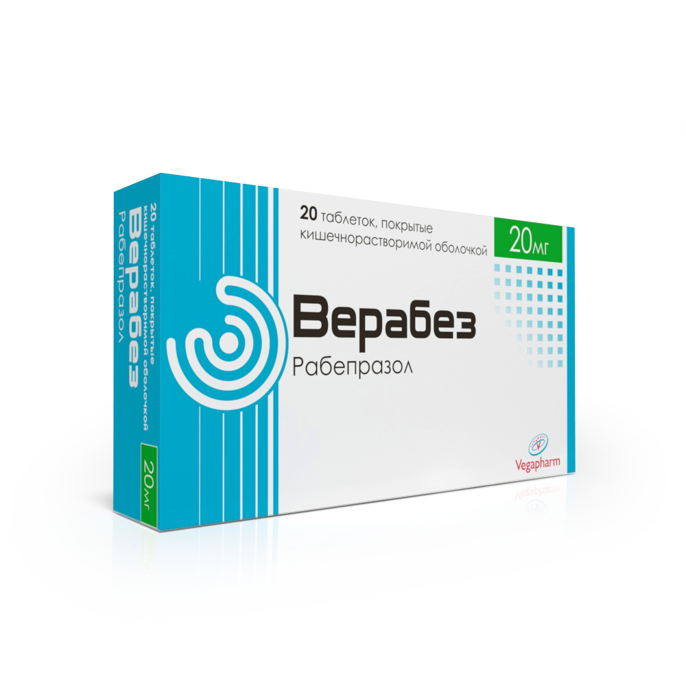 Верабез — это противоязвенное средство из группы ингибиторов протонной помпы (H+/K+-АТФ-азы), метаболизируется в париетальных клетках желудка до активных сульфонамидных производных, которые инактивируют сульфгидрильные группы H+/K+-АТФ-азы.