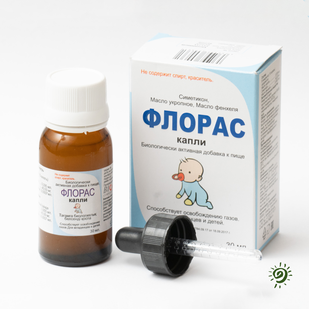Флорас –на основе растительных экстрактов, способствует устранению кишечной колики, запоров и высвобождению газообразования у детей.