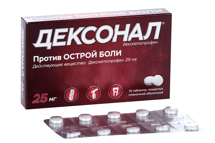 В зависимости от интенсивности болевого синдрома, рекомендуемая доза для взрослых составляет 12,5 мг декскетопрофена (1/2 таблетки Дексонал®) каждые 4–6 ч или 25 мг декскетопрофена (1 таблетка Дексонал®) каждые 8 ч.