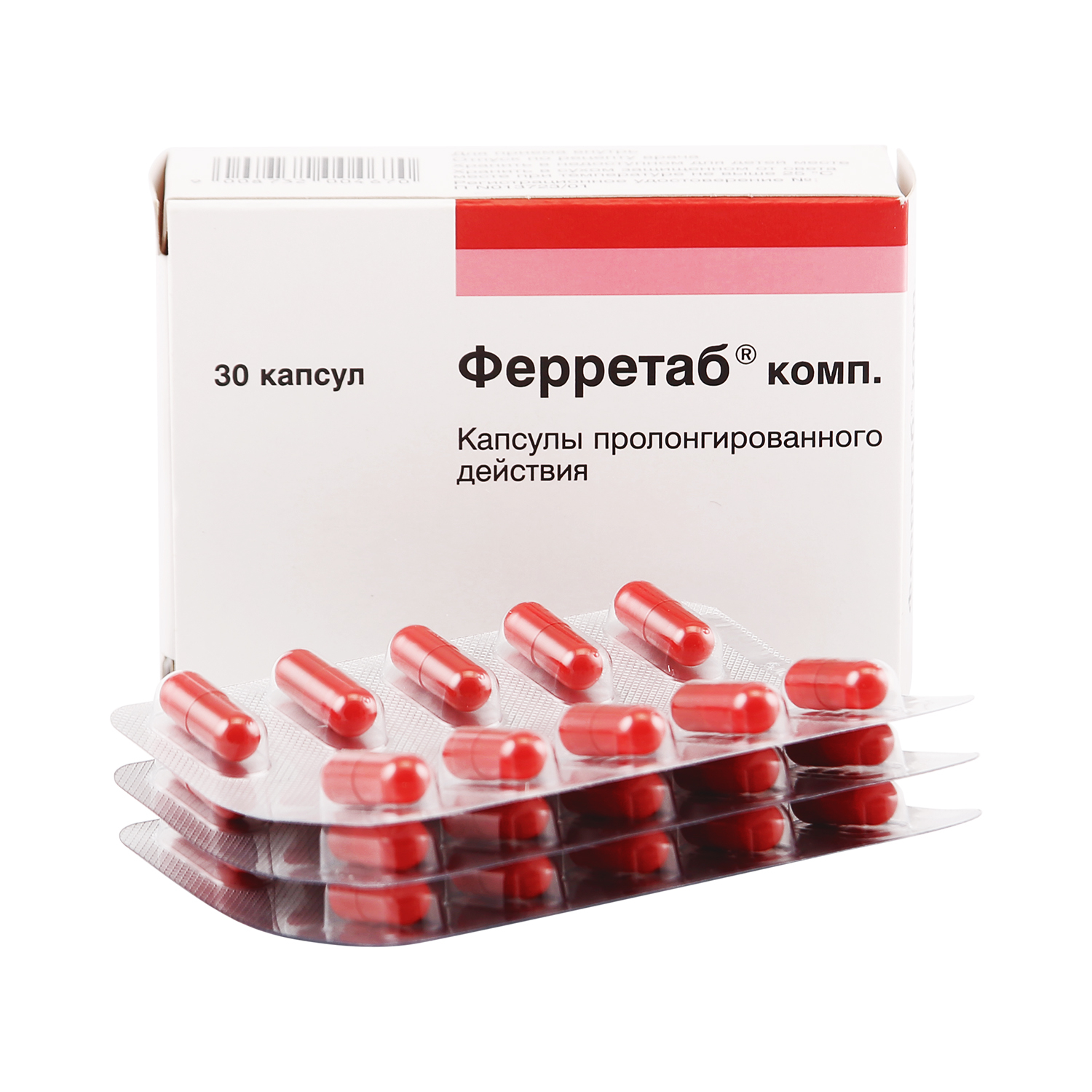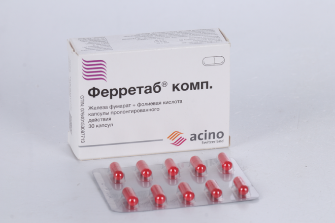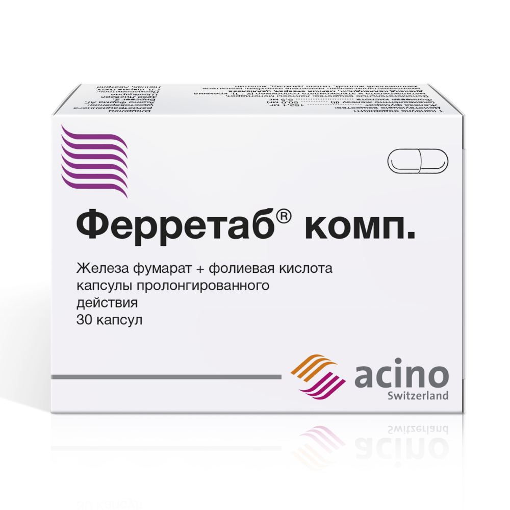 Ферретаб® комп. — средство для лечения и профилактики железодефицитных состояний. Капсулы Ферретаб® комп. содержат в качестве действующих веществ фумарат железа (II) и фолиевую кислоту в мини-таблетках с замедленным высвобождением для предотвращения высокой локальной концентрации железа, которая может раздражать слизистую оболочку.