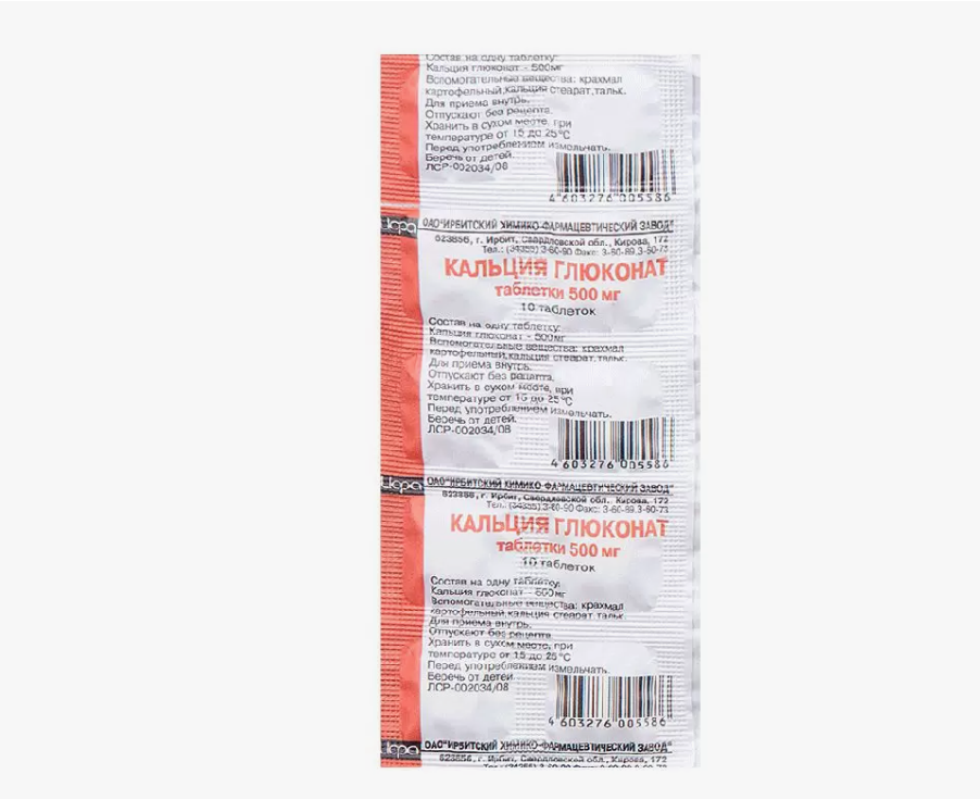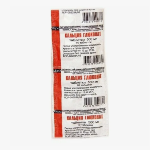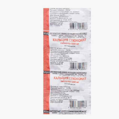 Активное вещество: кальция глюконат моногидрат - 500,0 мг