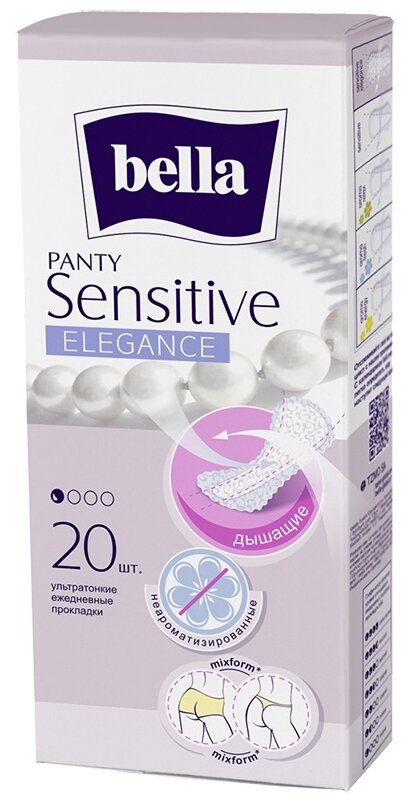 Ежедневные прокладки Bella Panty Sensitive Elegance отличаются хорошей воздухопроницаемостью. Прокладка тонкая, она хорошо ложится, благодаря анатомической конфигурации. Вкладыш прокладки имеет специальную форму и рифленый край. Особенность прокладки состоит в отсутствии ароматизаторов. Поэтому она отлично подходит для нежной кожи, склонной к раздражению.