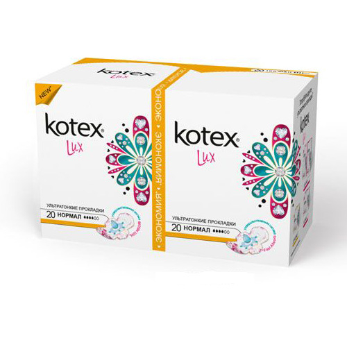 Ультратонкие прокладки Kotex "Lux. Нормал" с крылышками, с поверхностью "сеточка" предназначены для умеренных выделений.
