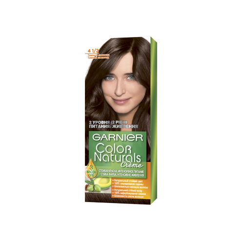 Краска “Garnier Color Naturals” отличается высокой стойкостью. Она подарит вашим волосам интенсивное питание и насыщенный цвет, и все это благодаря использованию в ее составе трех масел – карите, авокадо и оливы. Благодаря кремообразной структуре краска проста в нанесении. Она не растекается и легко распределяется по волосам. Ее формула раскрывает чешуйки волоса, позволяя пигментам проникнуть внутрь. В то же время, краска питает волосы маслом оливы, что препятствует повреждению структуры и пересушиванию. В комплектацию краски включен бальзам, предназначенный для интенсивного ухода за волосами после окрашивания. В его составе – масло карите, авокадо и оливы, которые позволяют восстановить волосы, сохранить их яркий и насыщенный оттенок, придать гладкость и сияние.
