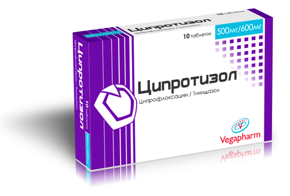 - Действующее вещество: Ципрофлоксацин + Тинидазол