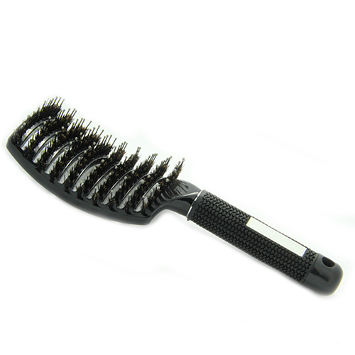 Массажная щетка узкой изогнутой прямоугольной формы с эластичной подушкой и пластиковыми зубчиками усиливает кровообращение кожи головы и стимулирует рост волос. Легкий пластиковый материал (полипропилен) и рифленая прорезиненная ручка обеспечивают удобство в использовании