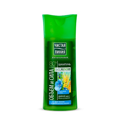 Шампунь Чистая Линия Объем и сила, пшеница и лен для тонких и ослабленных волос 400мл.