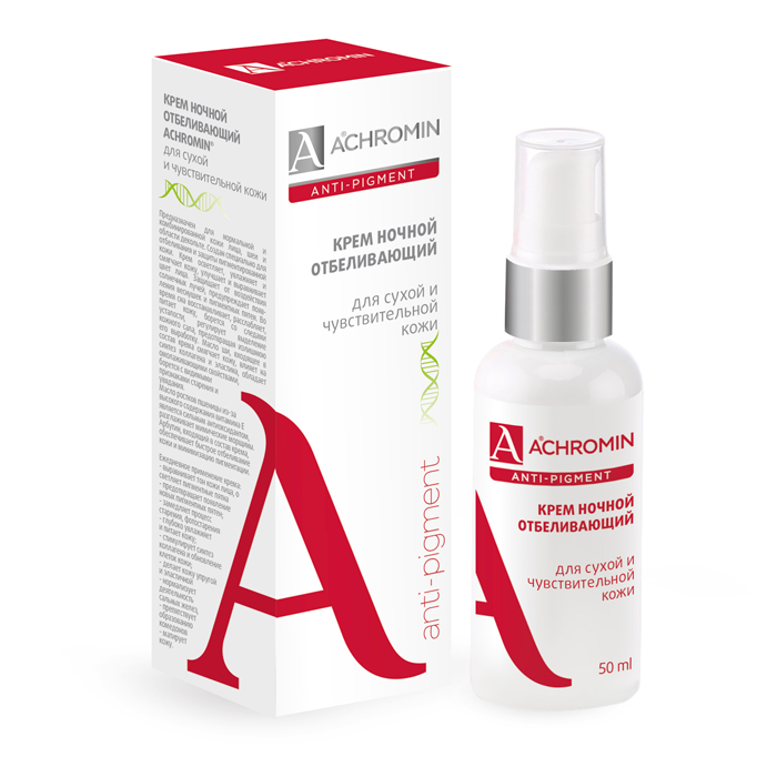 Ахромин, ночной крем отбеливающий для сухой и чувствительной кожи, 50 мл