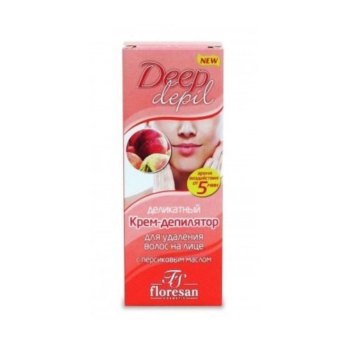 Деликатный крем-депилятор для удаления волос на лице Deep Depil с маслом персика.