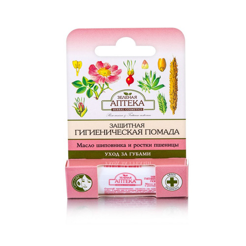Помада Зеленая Аптека для губ гигиеническая масло шиповника и ростки пшеницы, 3.6гр