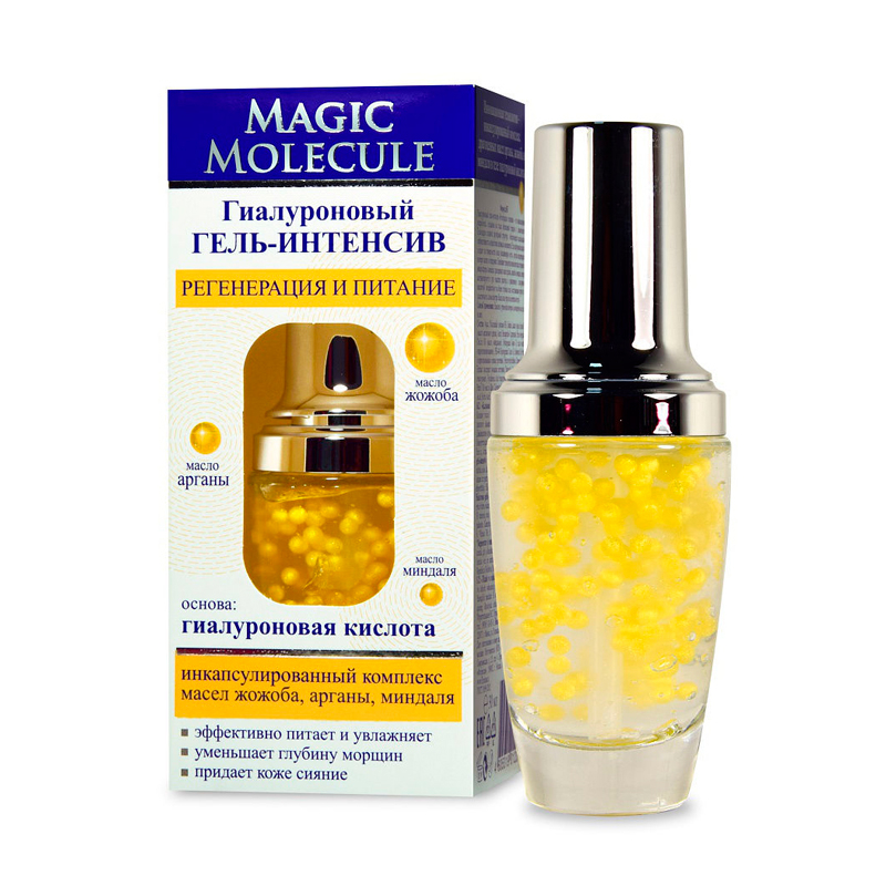Гиалуроновый гель - интенсив «Регенерация и питание» - это инновационная разработка, созданная на стыке интенсивной терапии и косметологии. Благодаря сложной двухфазной структуре, обеспечивается максимальная эффективность воздействия активных компонентов. Гель гиалуроновой кислоты создает на поверхности кожи увлажняющую «сеть», которая предотвращает потерю влаги в эпидермисе. Новейшие технологии позволили инкапсулировать в микросферы комплекс драгоценных масел арганы, жожоба и миндаля, которые активизируются при нажатии дозатора, и одновременно с гиалуроновой кислотой воздействуют на более глубокие слои, восстанавливая упругость и эластичность кожи изнутри.