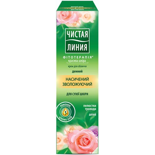 Крем для лица Фитотерапия Дневной Увлажняющий от Чистая Линия для сухой кожи интенсивно насыщает кожу влагой, смягчая ее. Активные натуральные компоненты крема успокаивают и освежают кожу, делая ее гладкой и ровной.