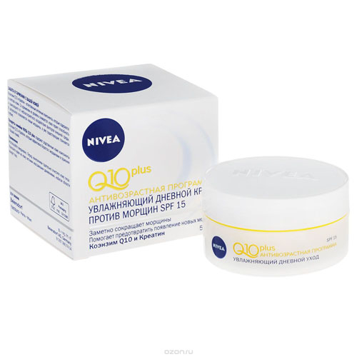 Легкая формула дневного крема для лица Nivea "Q10 plus" разработана специально для нормальной и сухой кожи. Крем содержит естественные активные компоненты, родственные с клетками кожи, которые эффективно борются с морщинами. Nivea "Q10 plus" предотвращает появление морщин, вызванных вредным воздействием солнечных лучей, благодаря фильтру SPF 15 и UVA-защите. Повышает концентрацию коэнзима Q10 и креатина в клетках кожи. В результате морщины заметно сокращаются, кожа становится более гладкой, а лицо выглядит моложе.